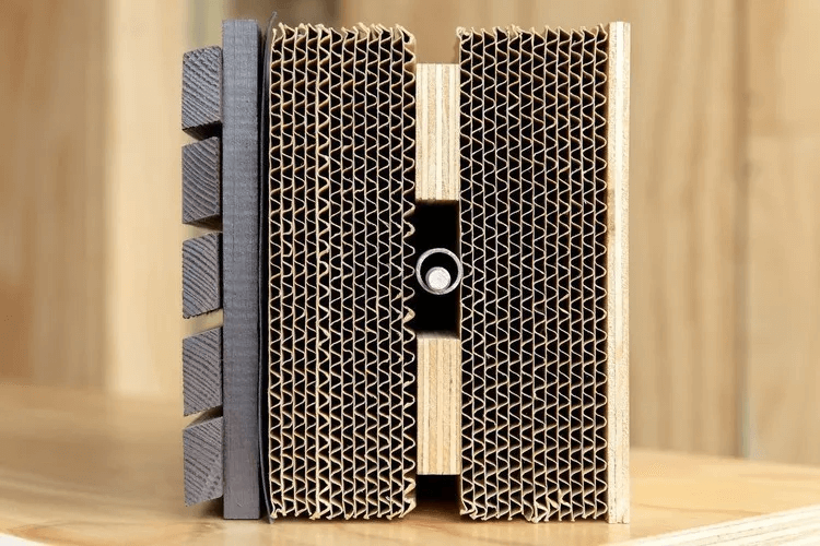 纸板层间是用环保的强力胶黏合,以确保耐久性和绝缘性。最后用防水箔和木板做保护层。